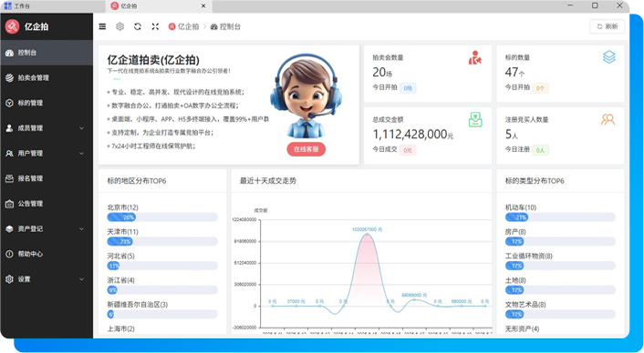 發(fā)布拍賣會、標的、拍賣公告,會員管理、報名審核、統(tǒng)計報表等,專業(yè)、便捷!